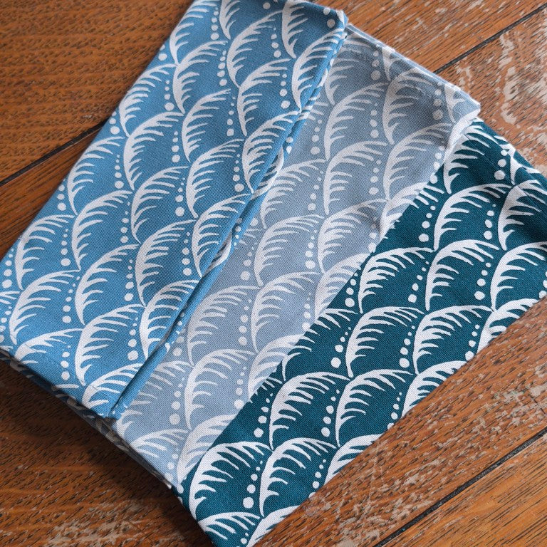 Printed and sewn in Suffolk, UK, they are made of soft, absorbent, 100% unbleached cotton, with a hanging loop stitched into one corner. They measure 45 x 75 cm.