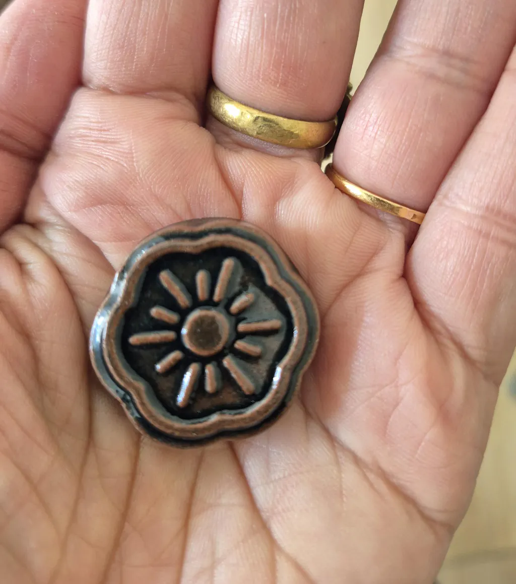 Lovely little needle holder quite small but beautifully made. Very pleasing in the hand