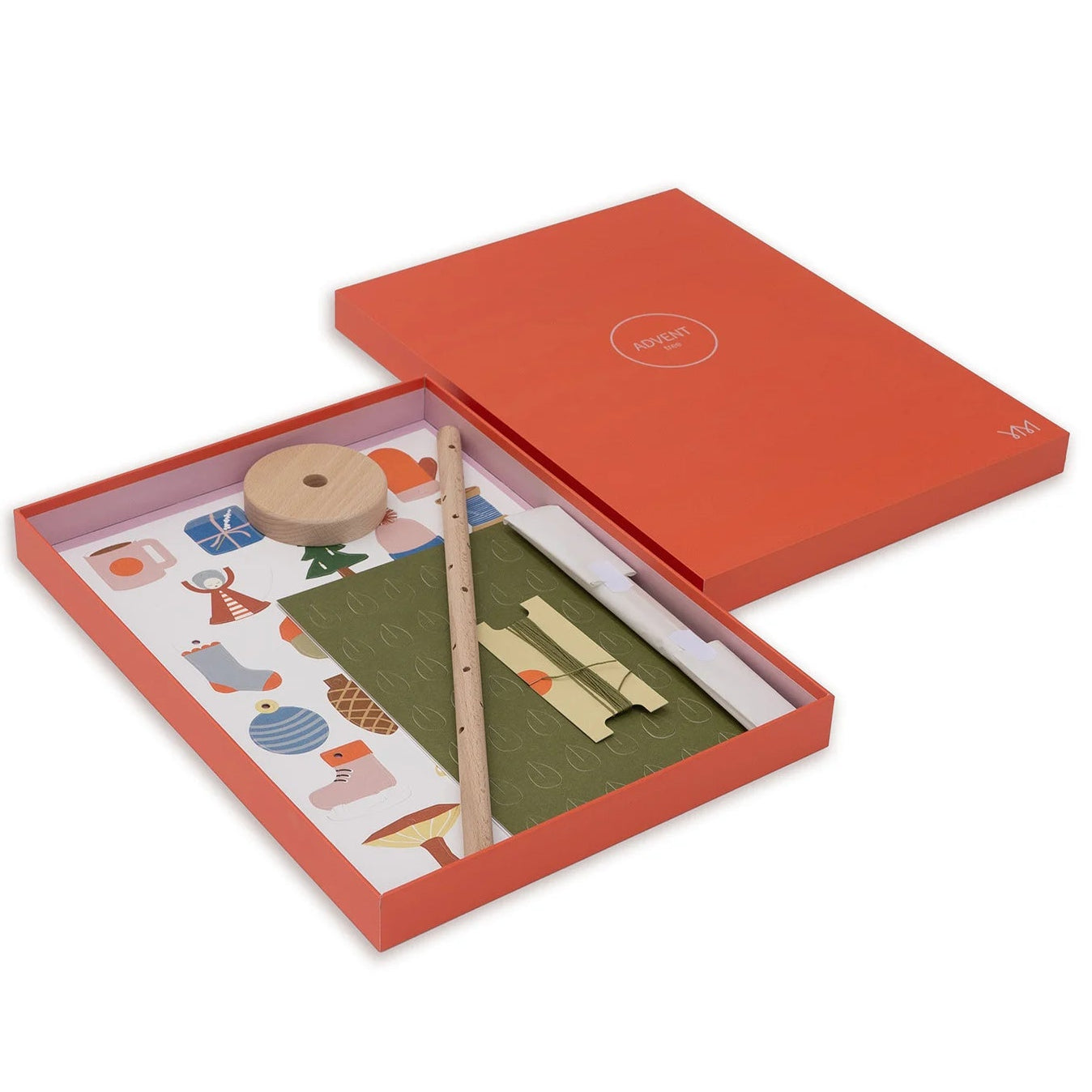 1 easy to assemble Advent Tree comprising one beechwood trunk (33 cm high), one beechwood base, and twelve ‘branches’.