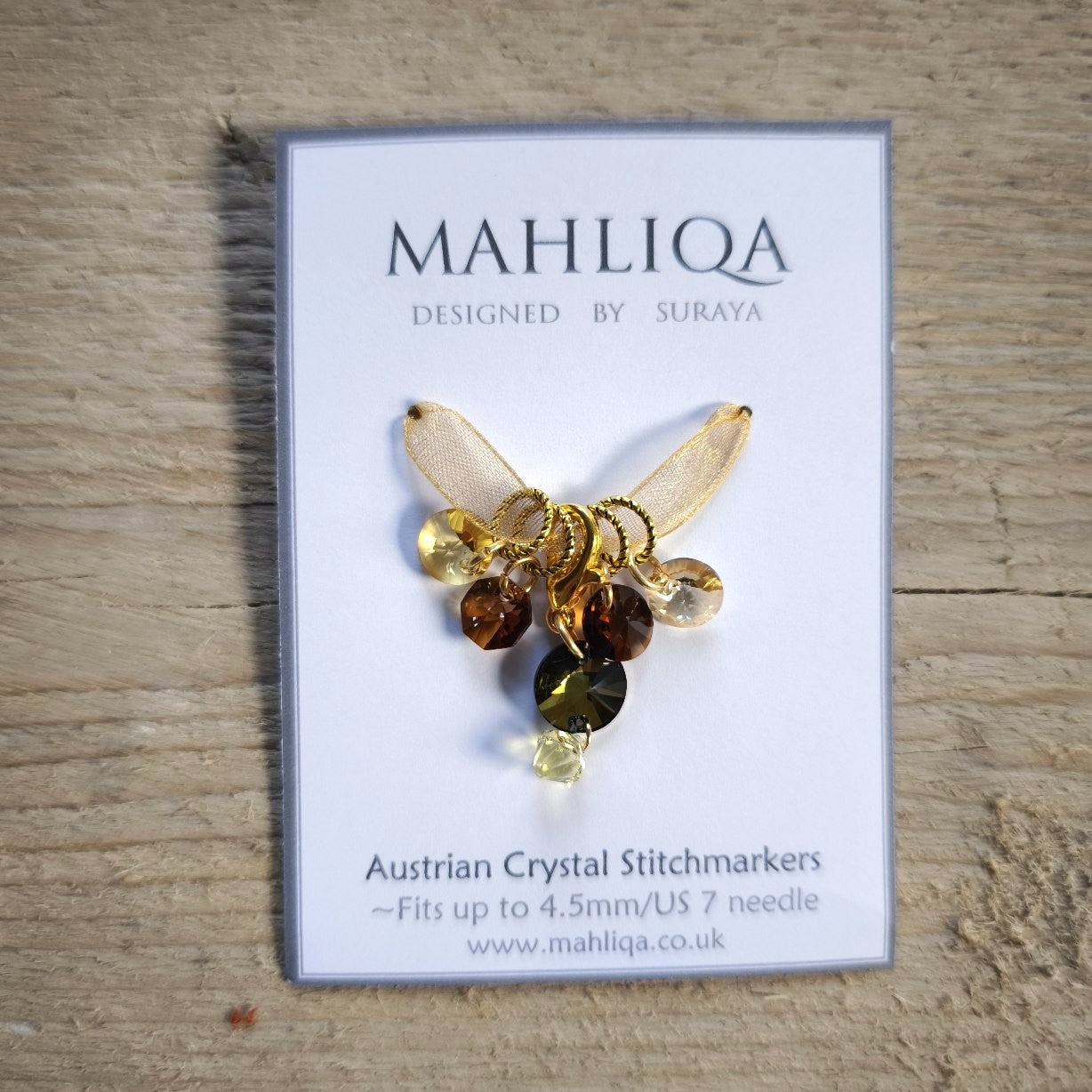 Bring some sparkly joy to your knitting and textile projects with these luscious stitch marker sets by Suraya Hossain of Mahliqa. Each set is colour curated by Suraya to create a gorgeous selection of glass crystal markers that will not get lost in your projects!