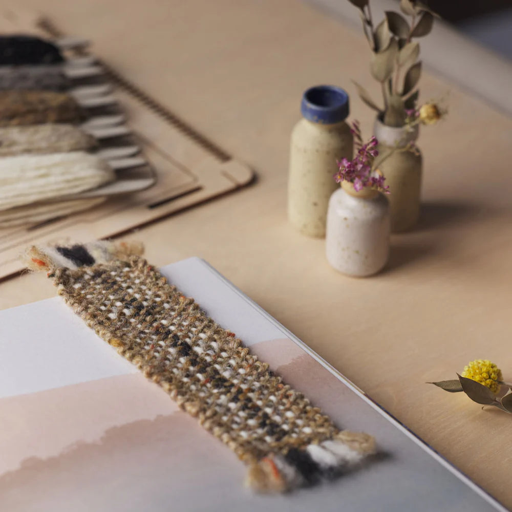 Included is a full colour instruction book with 5 beginner projects varying in difficulty to inspire you and get you on your way. Choose from 4 curated colourways of Donegal weaving yarn, pre-wound onto card shuttles. Simply snap off the colour you want and start weaving. Enough yarn is included to make every project from the book.