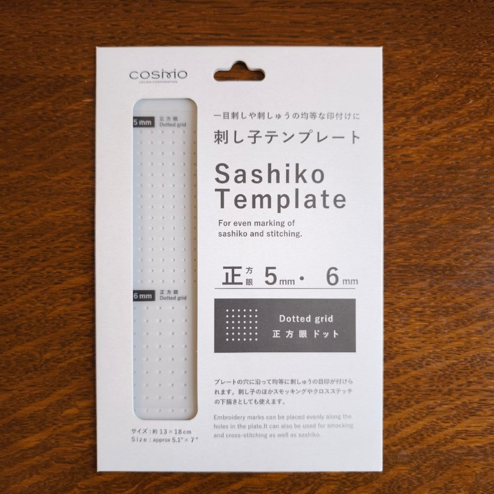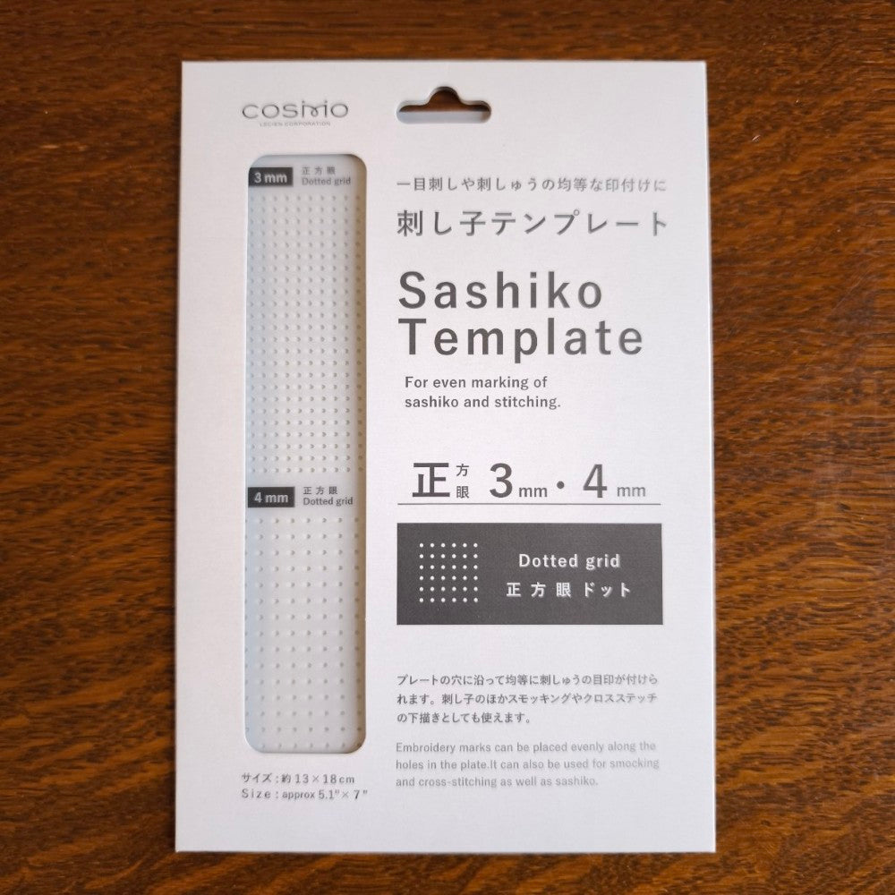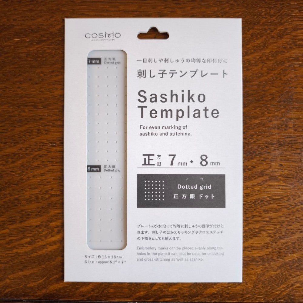 This useful template will help you to draw accurate grids onto fabric for sashiko or smocking patterns and is particularly useful for hitomezahi patterns (straight, one stitch patterns that are stitched in long lines).