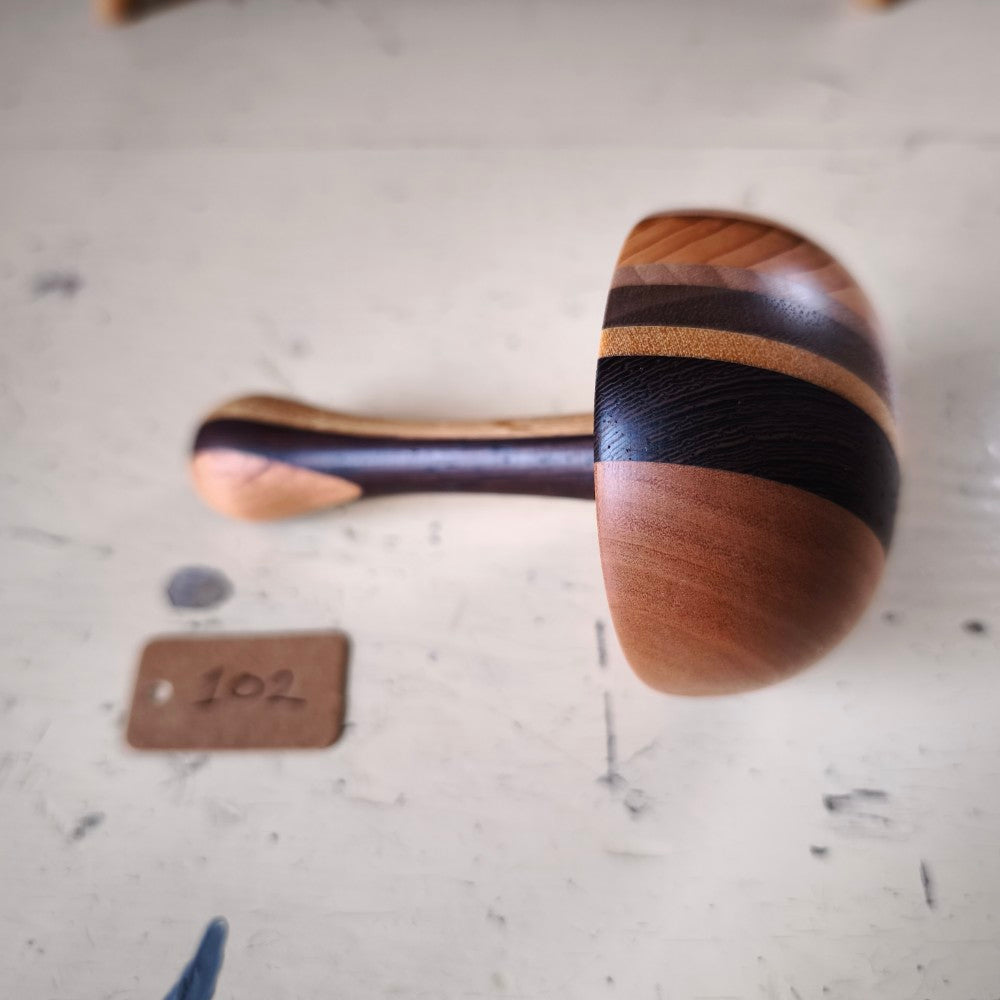 Each mushroom is turned on a lathe by Jennifer and has its own individual character.